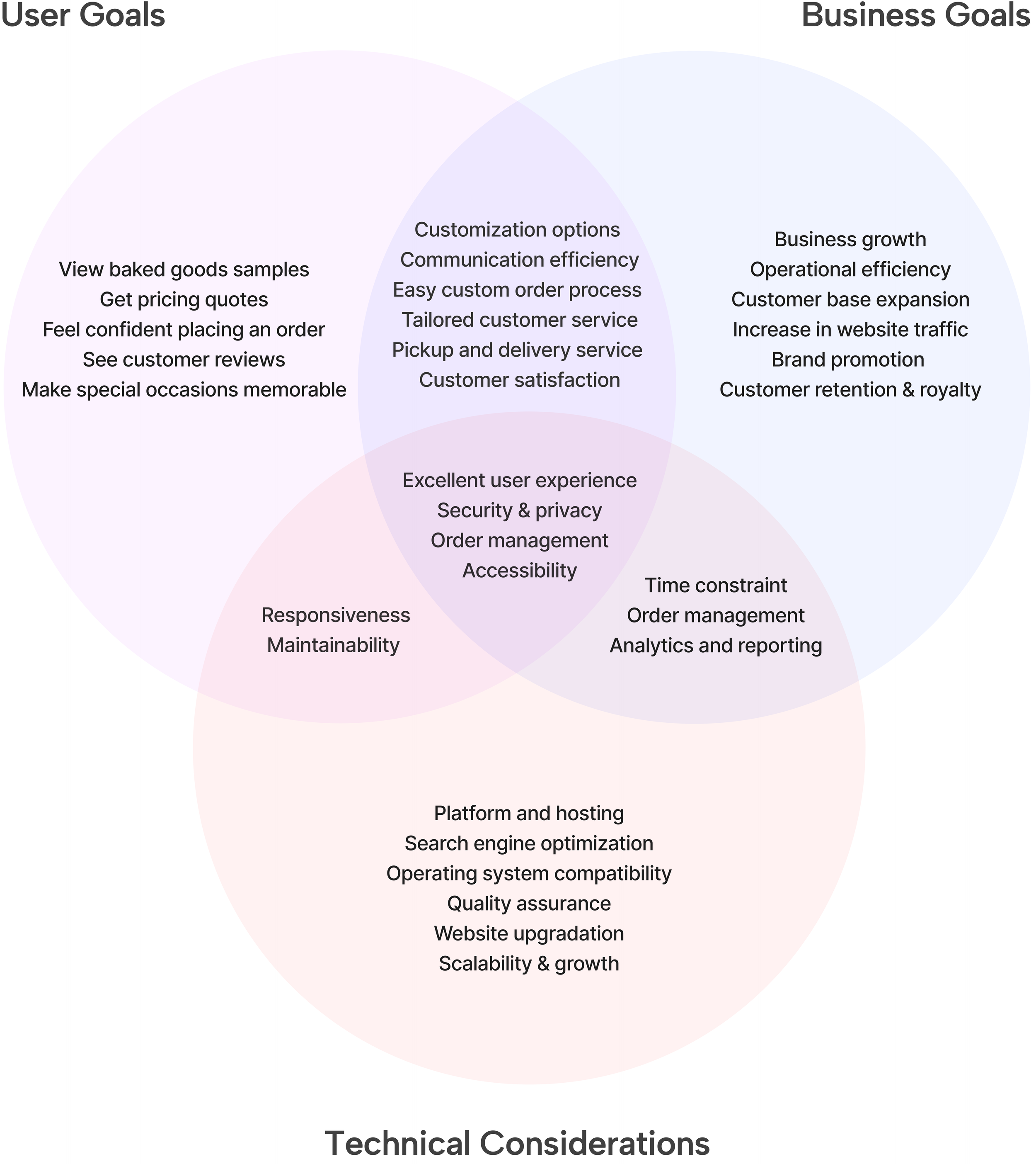 I started the project by meeting with the client to understand her custom baking business and her business goals, which include: