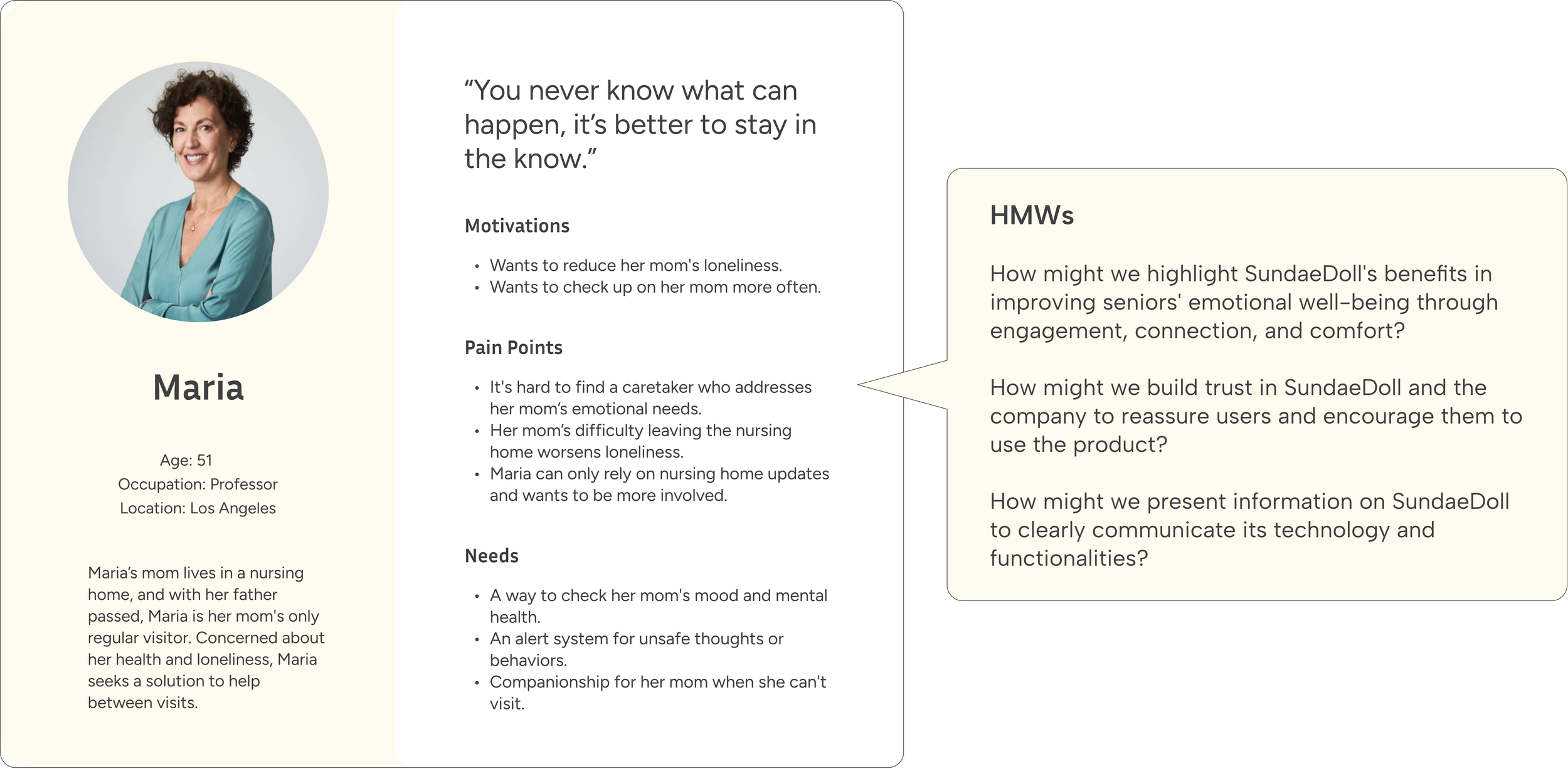 After user research and defining the persona, we discussed with the stakeholders to align business and user goals.