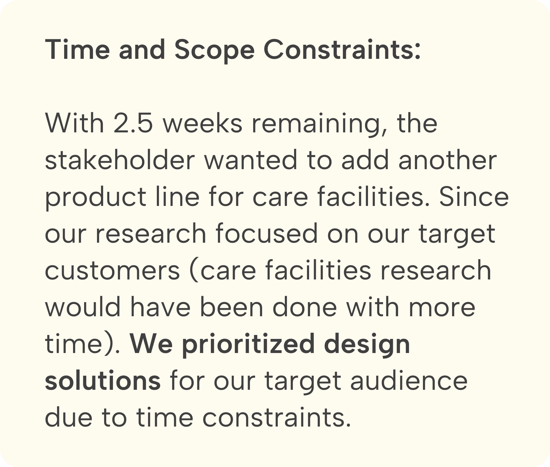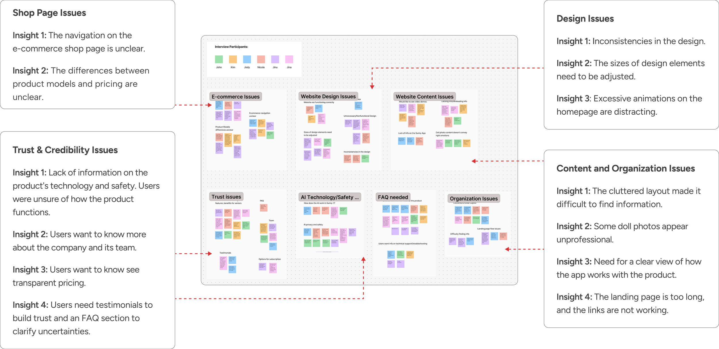 We interviewed 6 potential customers (family members of seniors) to understand their challenges. Using affinity mapping and identified 4 key areas for improvement: